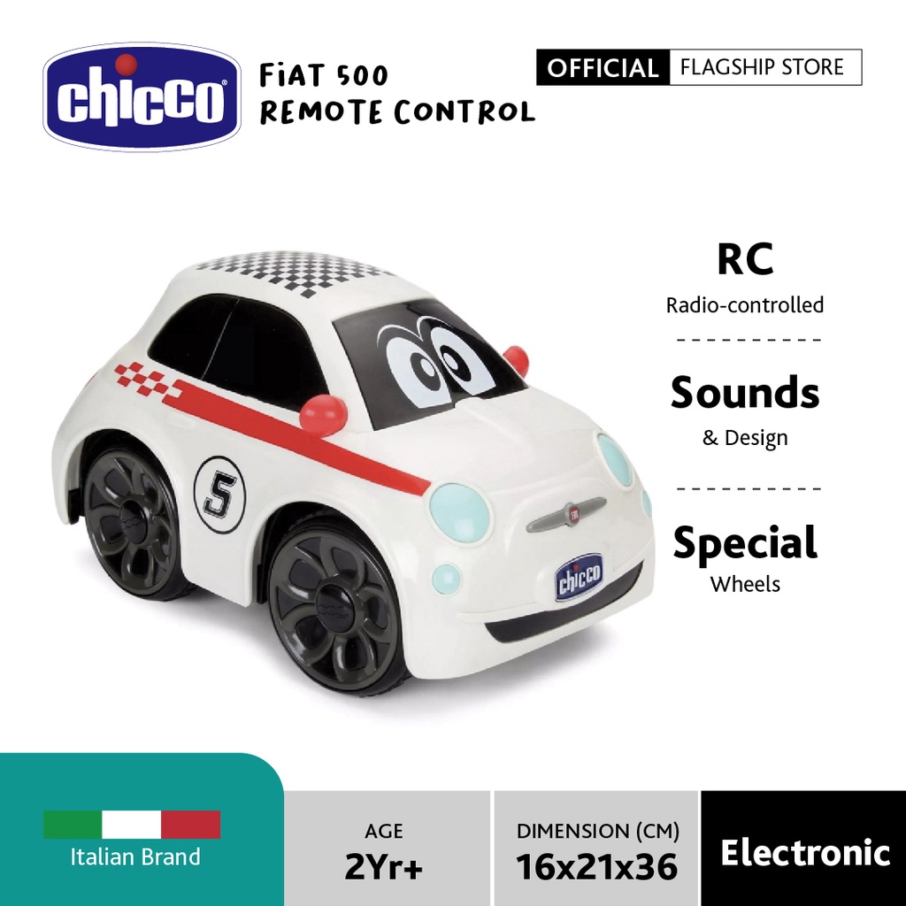 Chicco Fiat 500 remote control car isolated on white background Very well made.